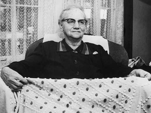 The industry began in a simple way, around the turn of the century. A young, Dalton woman, Catherine Evans Whitener, recreated a bedspread in a hand-crafted pattern she had seen, for a wedding gift. Copying a quilt pattern, she sewed thick cotton yarns with a running stitch into unbleached muslin, clipped the ends of the yarn so they would fluff out, and finally, washed the spread in hot water to hold the yarns in by shrinking the fabric. Interest grew in young Catherine’s bedspreads, and in 1900, she made the first sale of a spread for $2.50. Demand became so great for the spreads that by the 1930s, local women, who were real entrepreneurs, had “haulers,” who would take the stamped sheeting and yarns to front porch workers. Often, entire families worked to hand tuft the spreads for 10 to 25 cents per spread. The local term for the sewing process was “turfin” for the nearly 10,000 area cottage tufters — men, women, and children. Bedspread income was instrumental in helping many area families survive the depression.